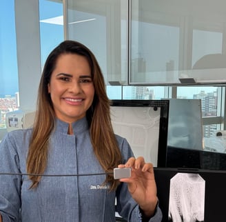 Aqui no meu consultório, utilizo o escaneamento digital, que oferece uma precisão impressionante no ajuste e na fabricação das próteses, garantindo conforto e estética superiores. As principais vantagens desse processo incluem a eliminação de moldagens tradicionais desconfortáveis, a aceleração do tempo de produção e a possibilidade de visualizar uma prévia do resultado final.